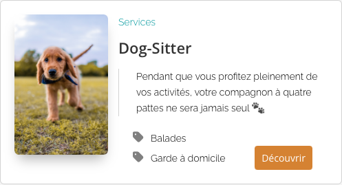 Nous pouvons organiser un service de dog-sitting de confiance, directement à votre logement ou à proximité, afin que vous puissiez profiter pleinement de votre séjour en toute sérénité, pendant que votre compagnon est entre de bonnes mains.