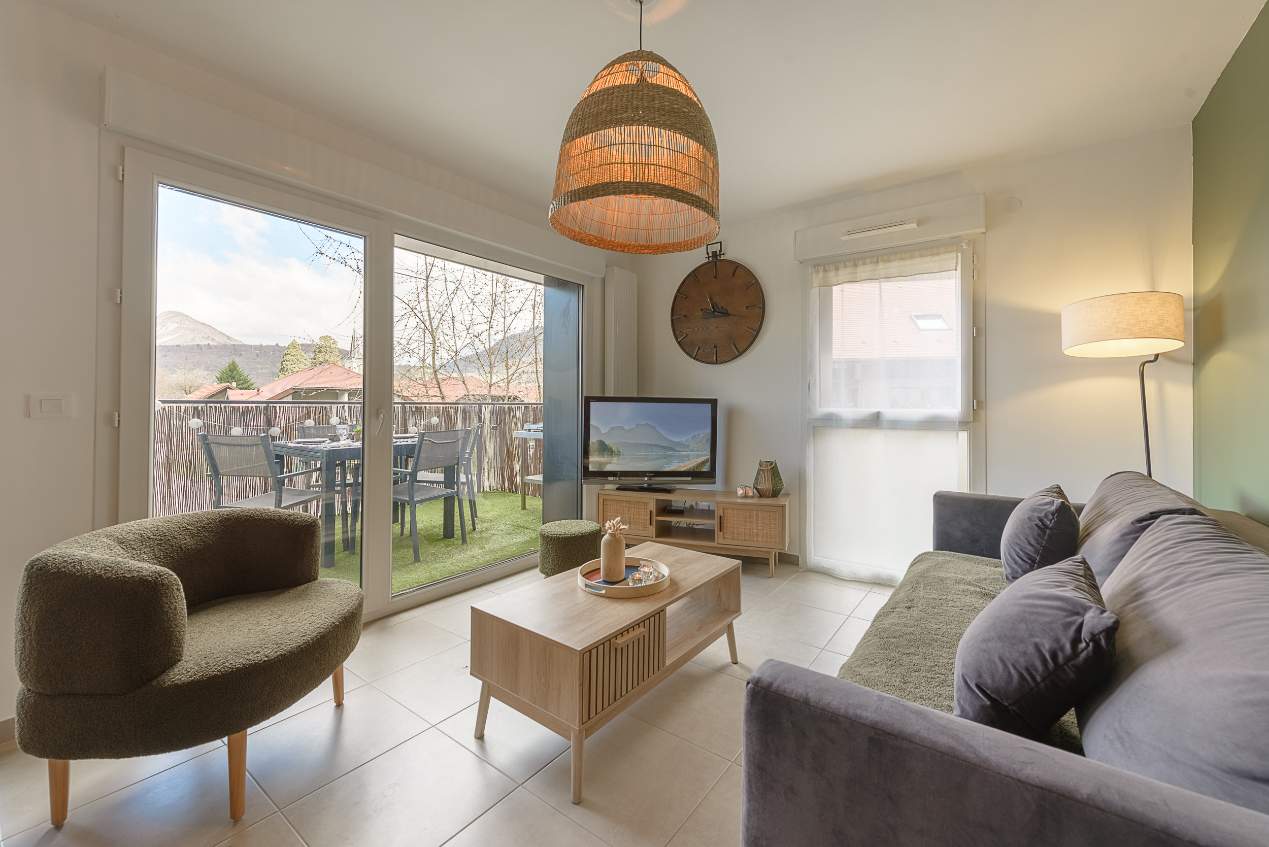 This 387 sq.f garden-floor apartment offers unique access to the lake just 10m away and a superb view of the mountains and Duingt castle.