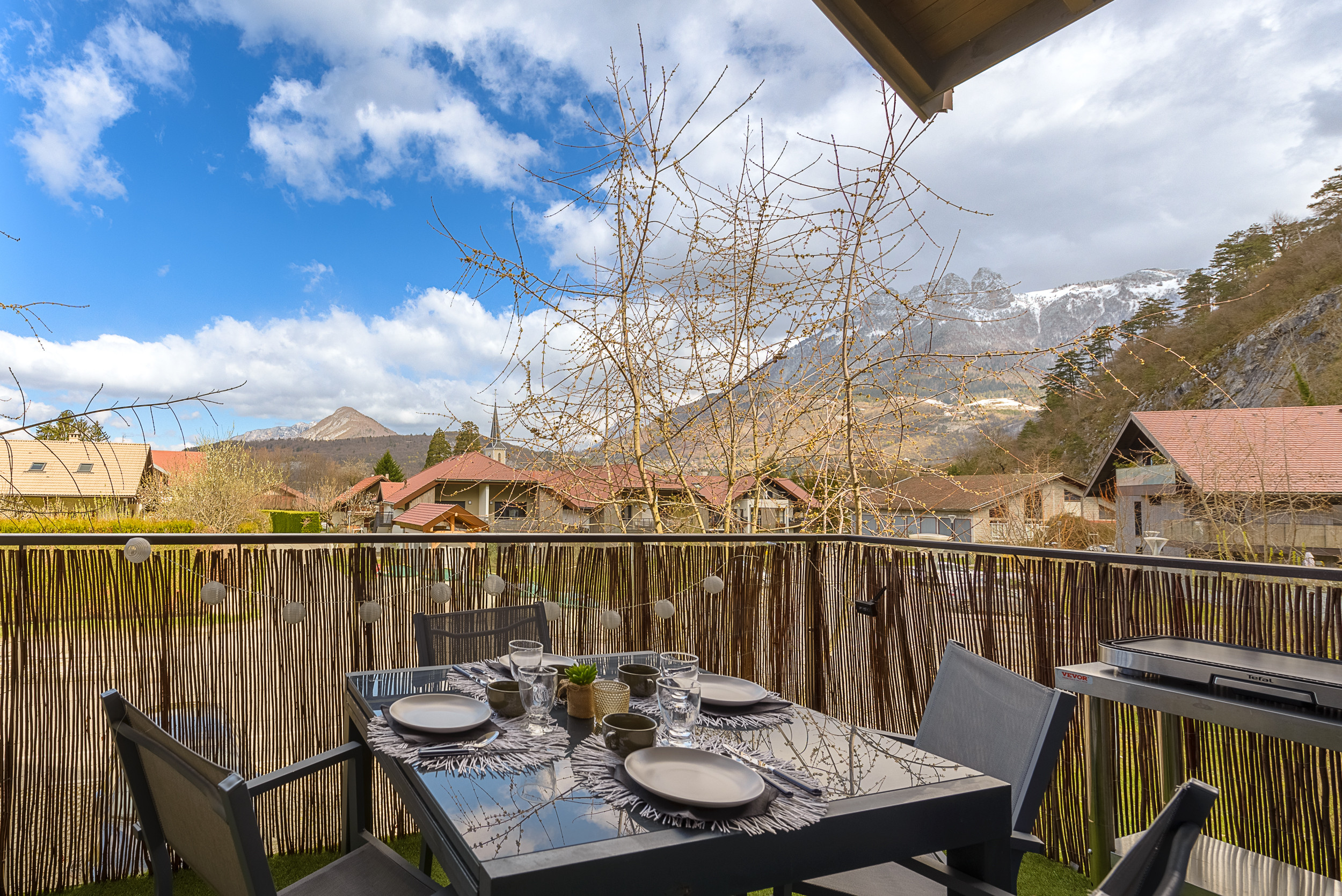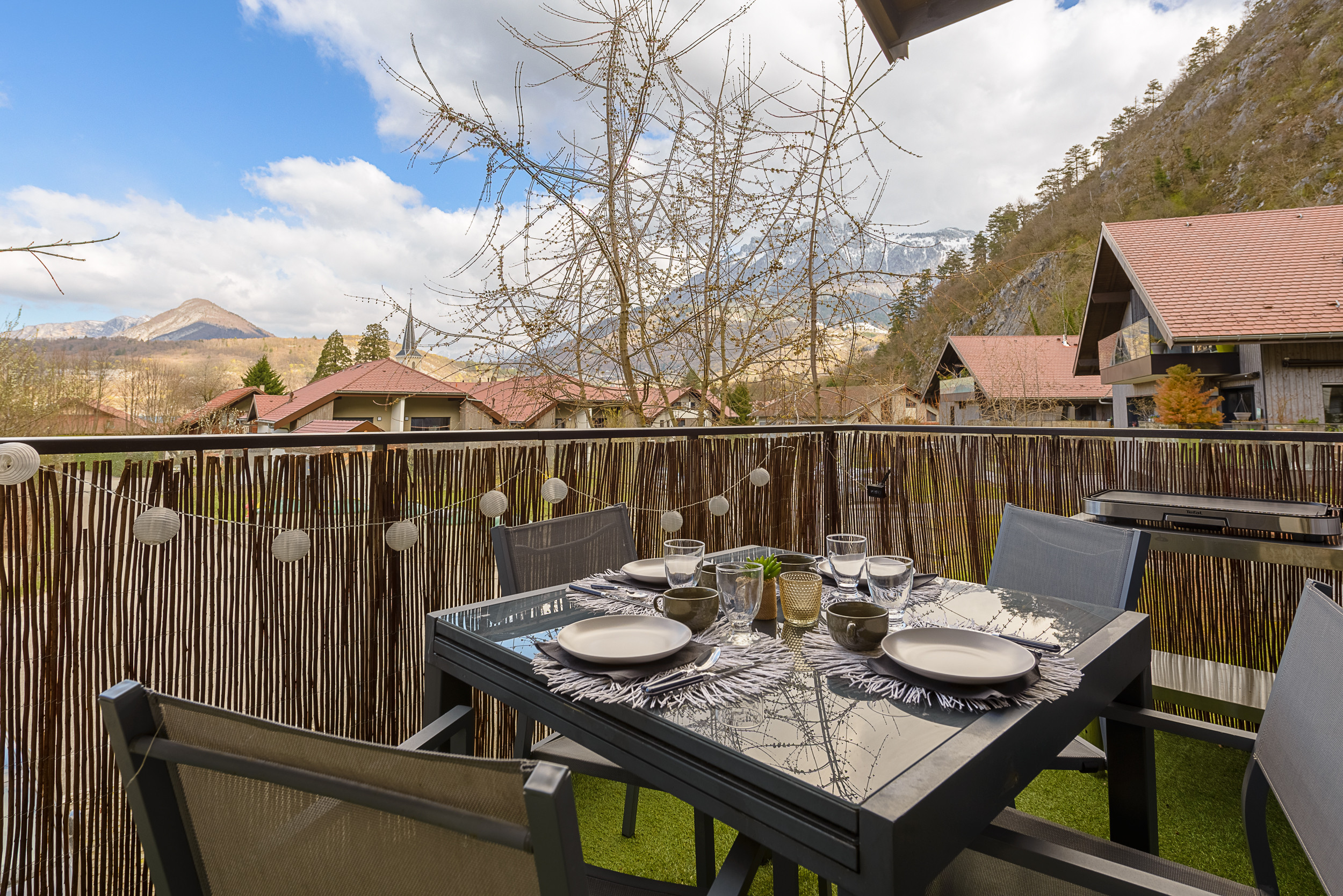 - A sunny balcony, perfect for dining, with a table and electric plancha