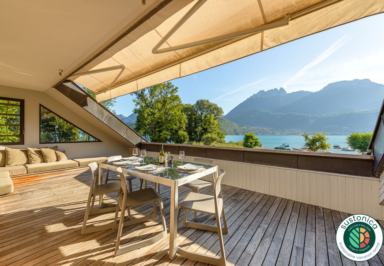 This 387 sq.f garden-floor apartment offers unique access to the lake just 10m away and a superb view of the mountains and Duingt castle.