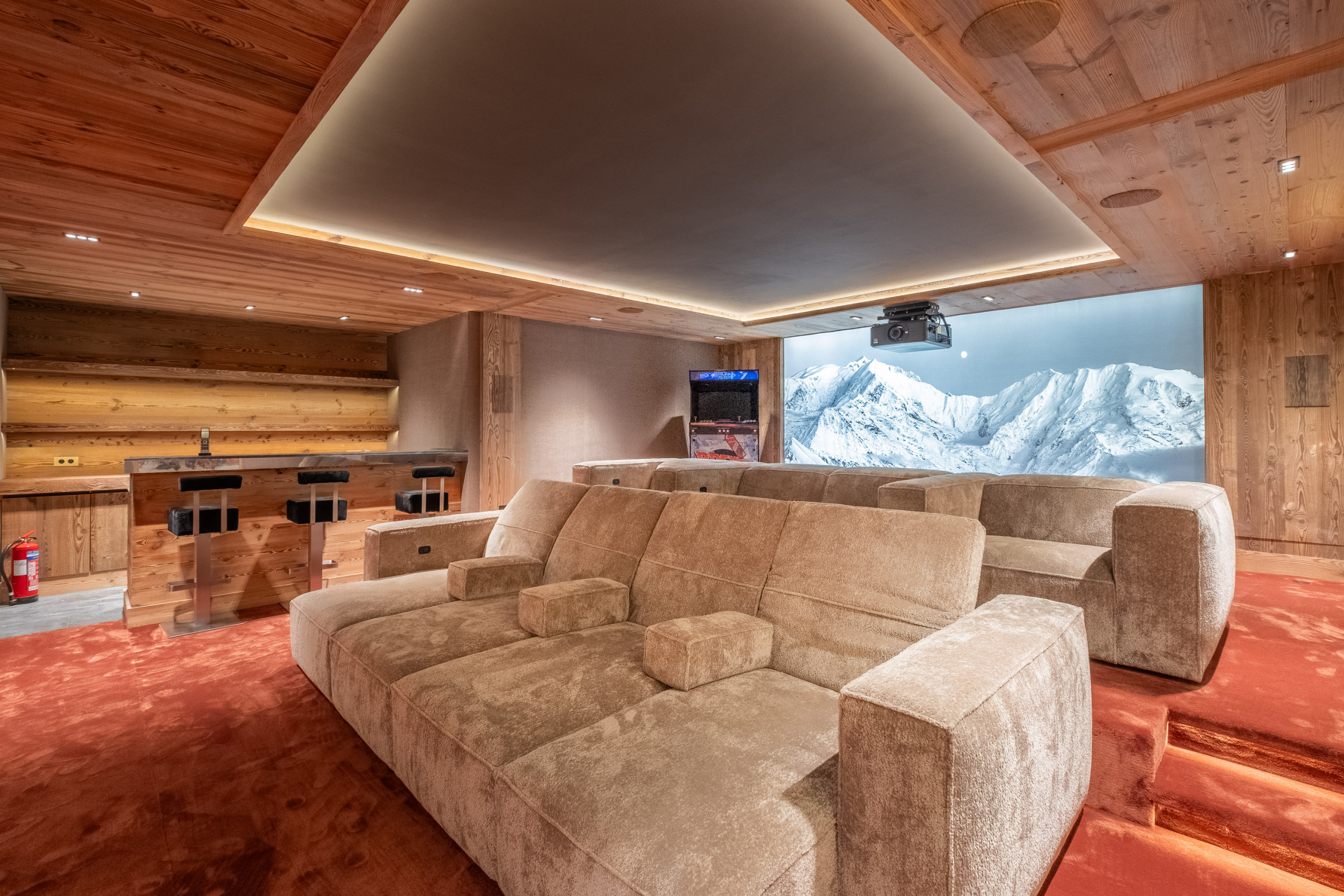 After skiing, relax in the private spa or enjoy a film with family in the cinema room, hot chocolate or mulled wine in hand. An alpine haven of serenity.