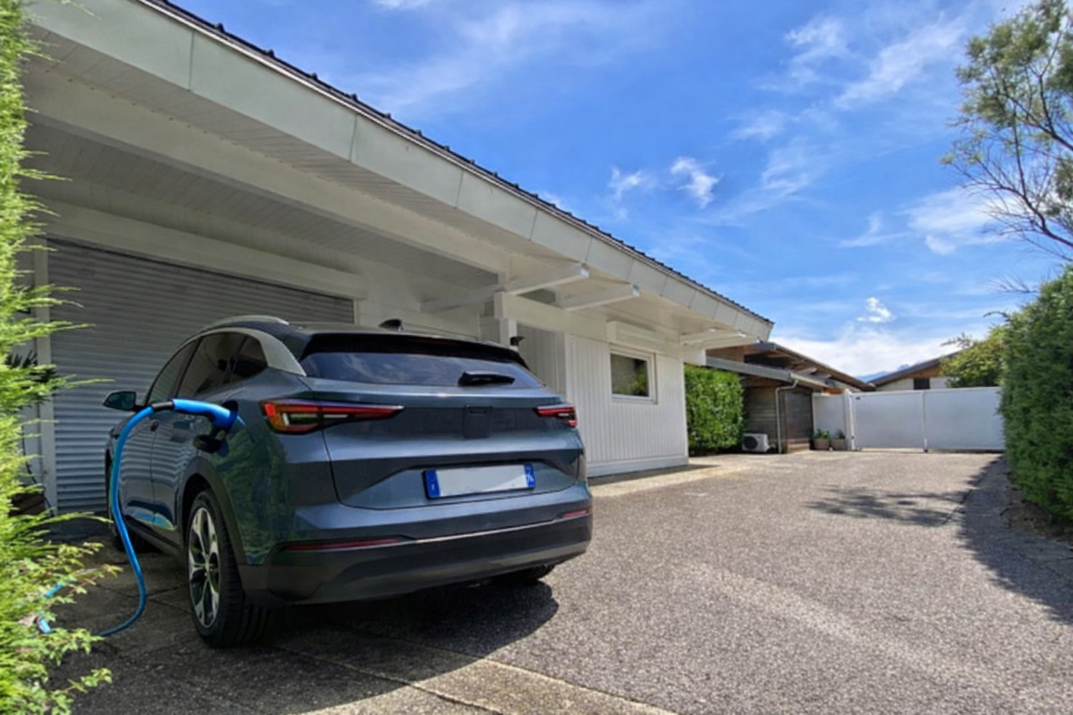 - Private parking: one space in the garage (with bicycle storage) + two spaces in front of the garage