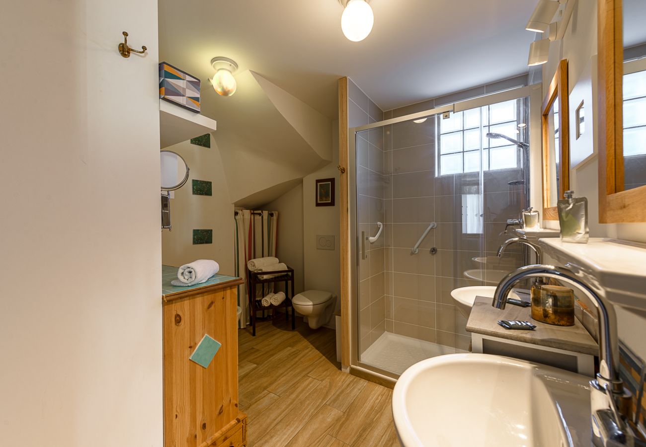 - Bedroom n°4 - Suite L'Arcalod : 1 queensize bed on the mezzanine, 1 single bed 80x190 ensuite shower room with WC, office area