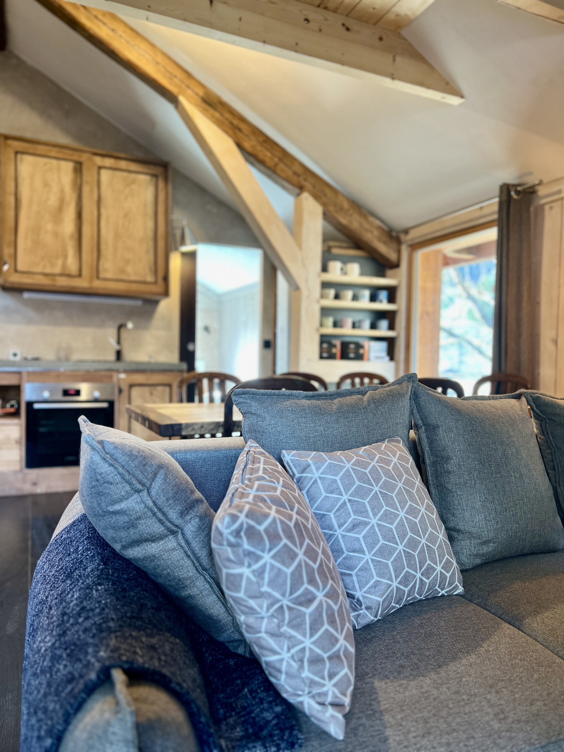Un espace de vie ouvert et confortable, idéal pour se détendre après une journée sur les pistes.