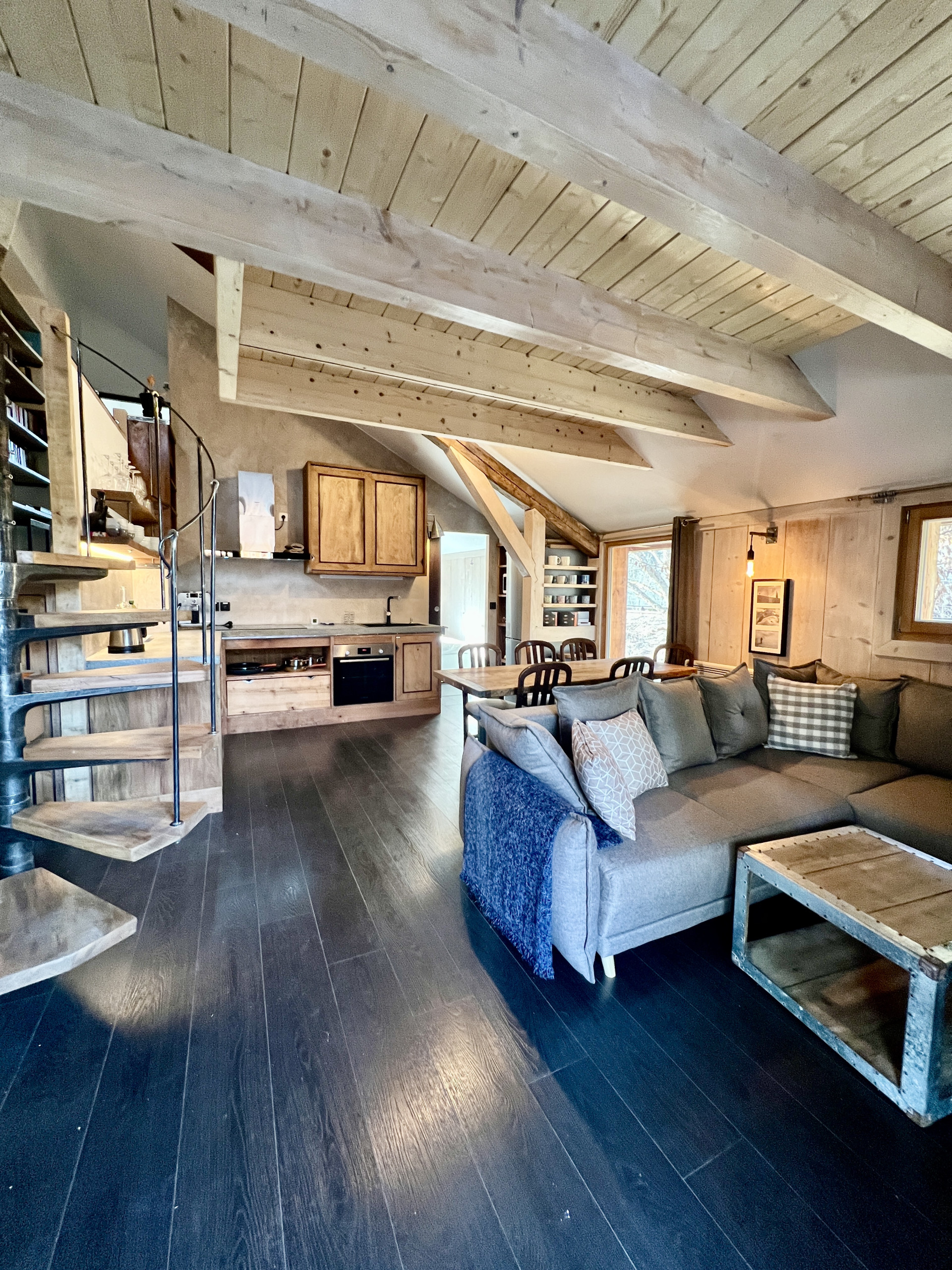 Le Refuge est un demi-chalet confortable et spacieux, avec une chambre, situé sur la Route des Bossons dans la vallée de Chamonix. Idéal pour les couples ou les petites familles, ce chalet de ski à Chamonix allie le style alpin moderne au charme traditionnel de la vie montagnarde.