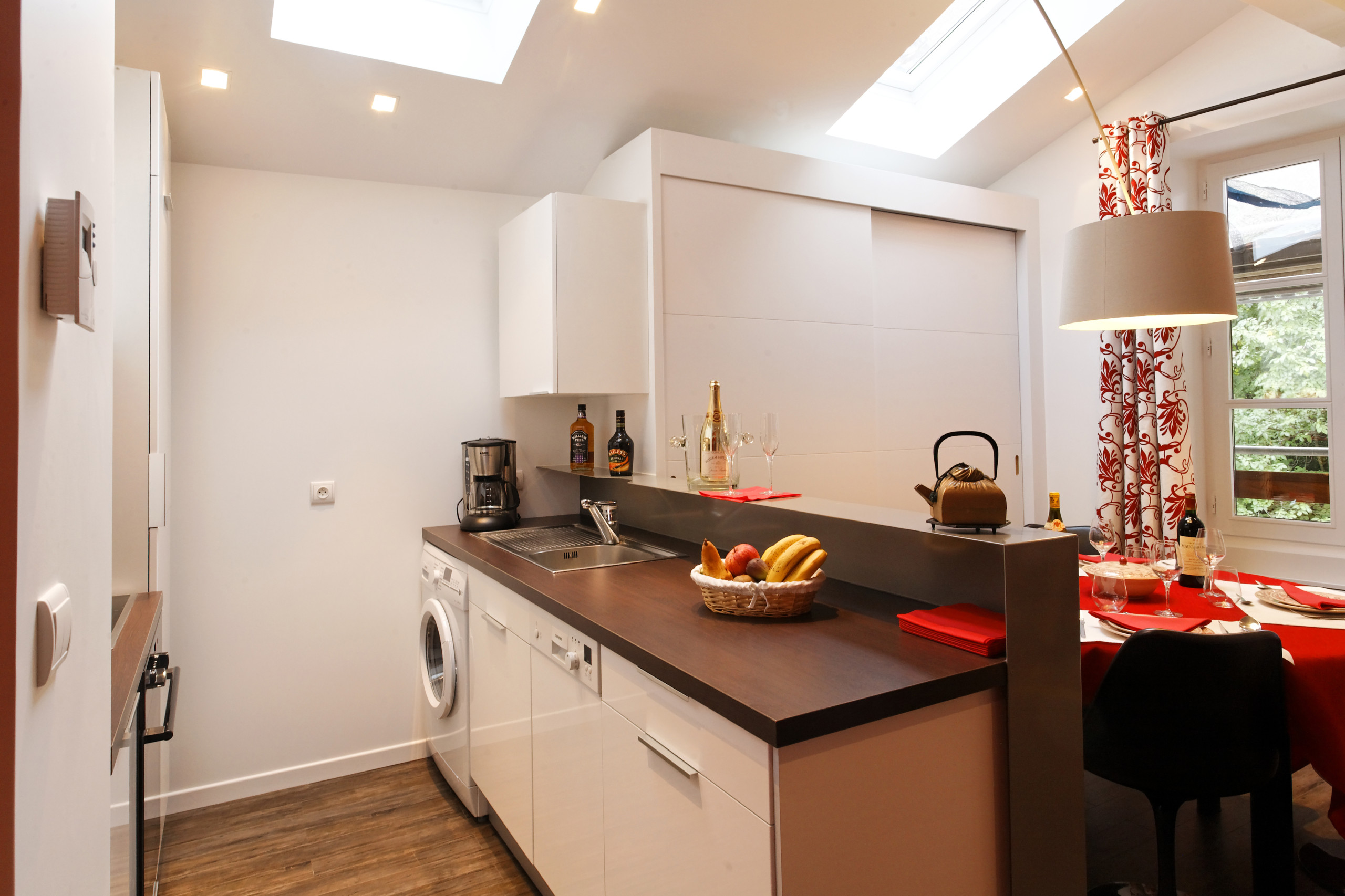 * Cuisine américaine entièrement équipée (plaque vitrocéramique, four, micro-ondes, lave-vaisselle, réfrigérateur/congélateur…)