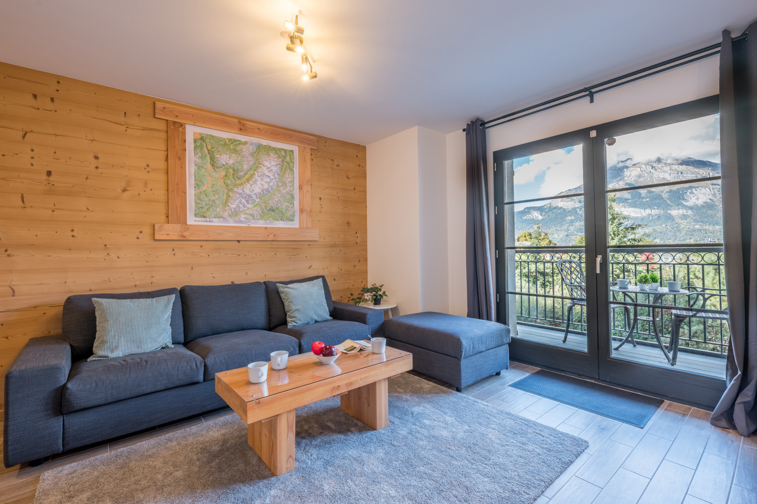 Lumineux, aéré et propre, notre appartement dispose d'un grand espace de vie ouvert avec un grand canapé confortable, une table à manger pour 8 personnes et une cuisine américaine ouverte, deux salles de bains modernes et trois chambres, pouvant accueillir jusqu'à 8 personnes confortablement. Sortez sur le balcon privé et profitez des vues spectaculaires sur les montagnes environnantes. C'est l'endroit idéal pour déguster un café du matin ou un verre de vin le soir.