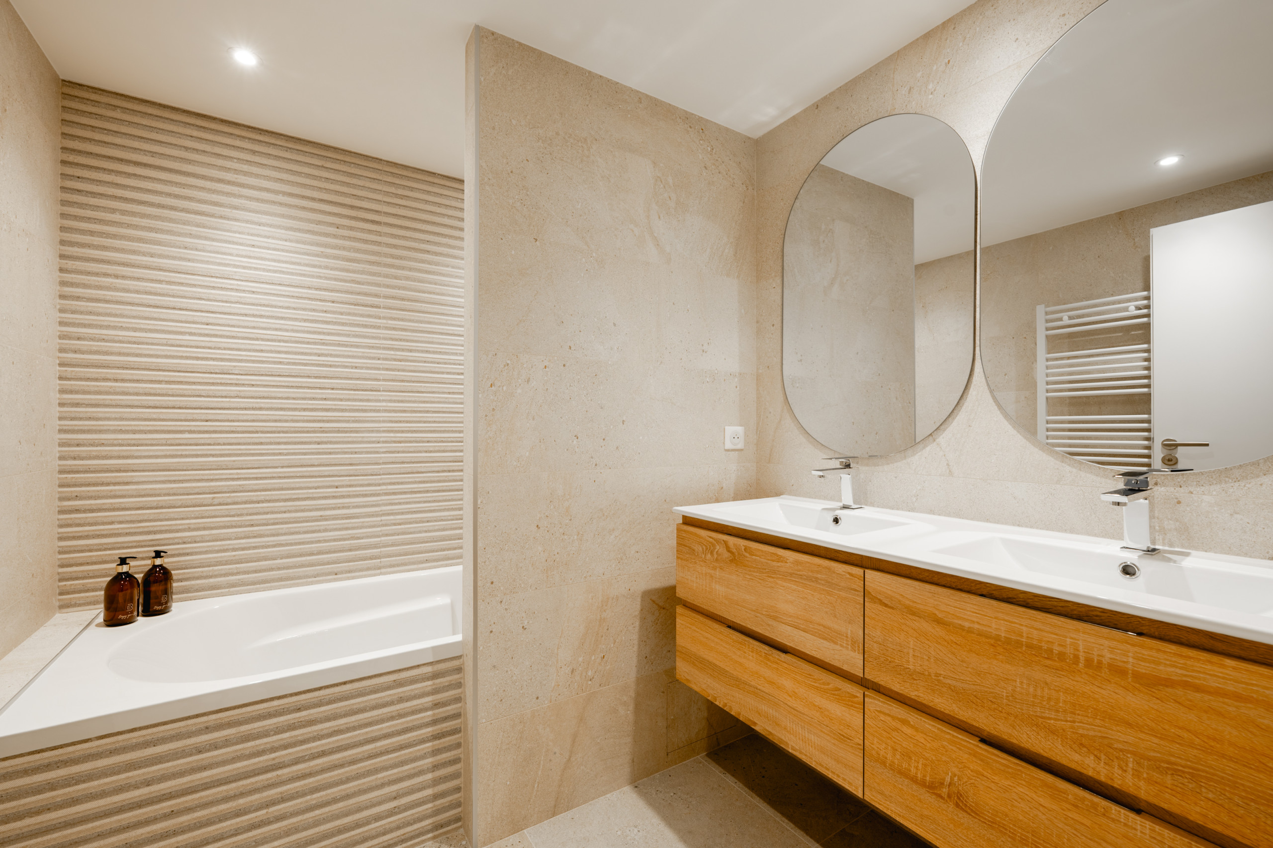 * Vaste séjour baigné de lumière grâce à sa double exposition, aménagé avec un mobilier chaleureux.