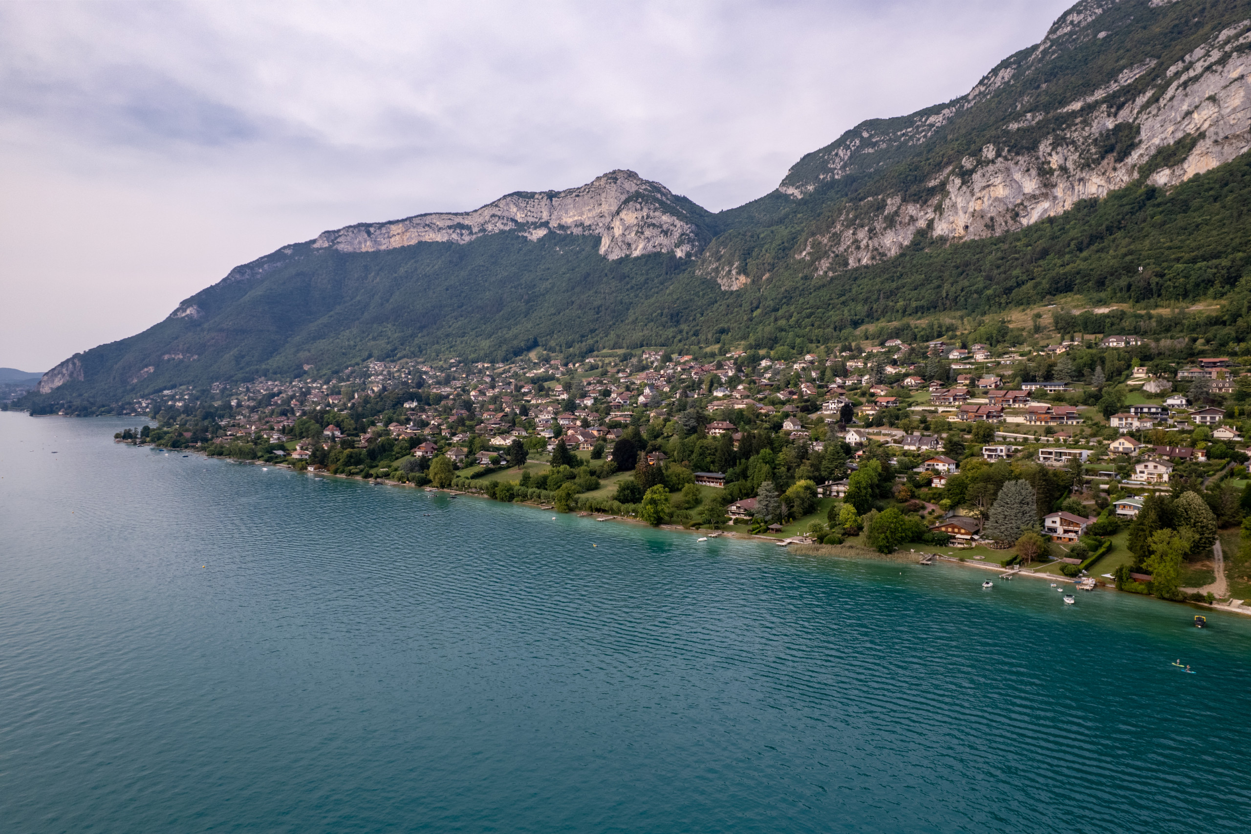 À l’intérieur, ses volumes généreux et baignés de lumière séduisent immédiatement. La grande cuisine ouverte et entièrement équipée s’intègre harmonieusement au vaste séjour, créant un lieu de vie convivial prolongé par une terrasse offrant une vue panoramique sur le lac et les montagnes environnantes. Face à vous, le Semnoz se dresse majestueusement, depuis la rive la plus ensoleillée du lac.